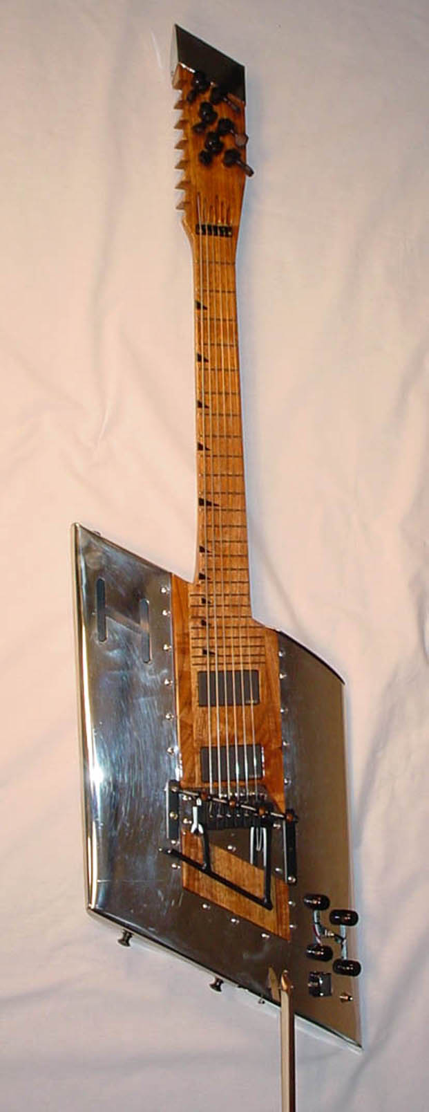radius. Walnut fretboard is part of neck. Ebony inlays